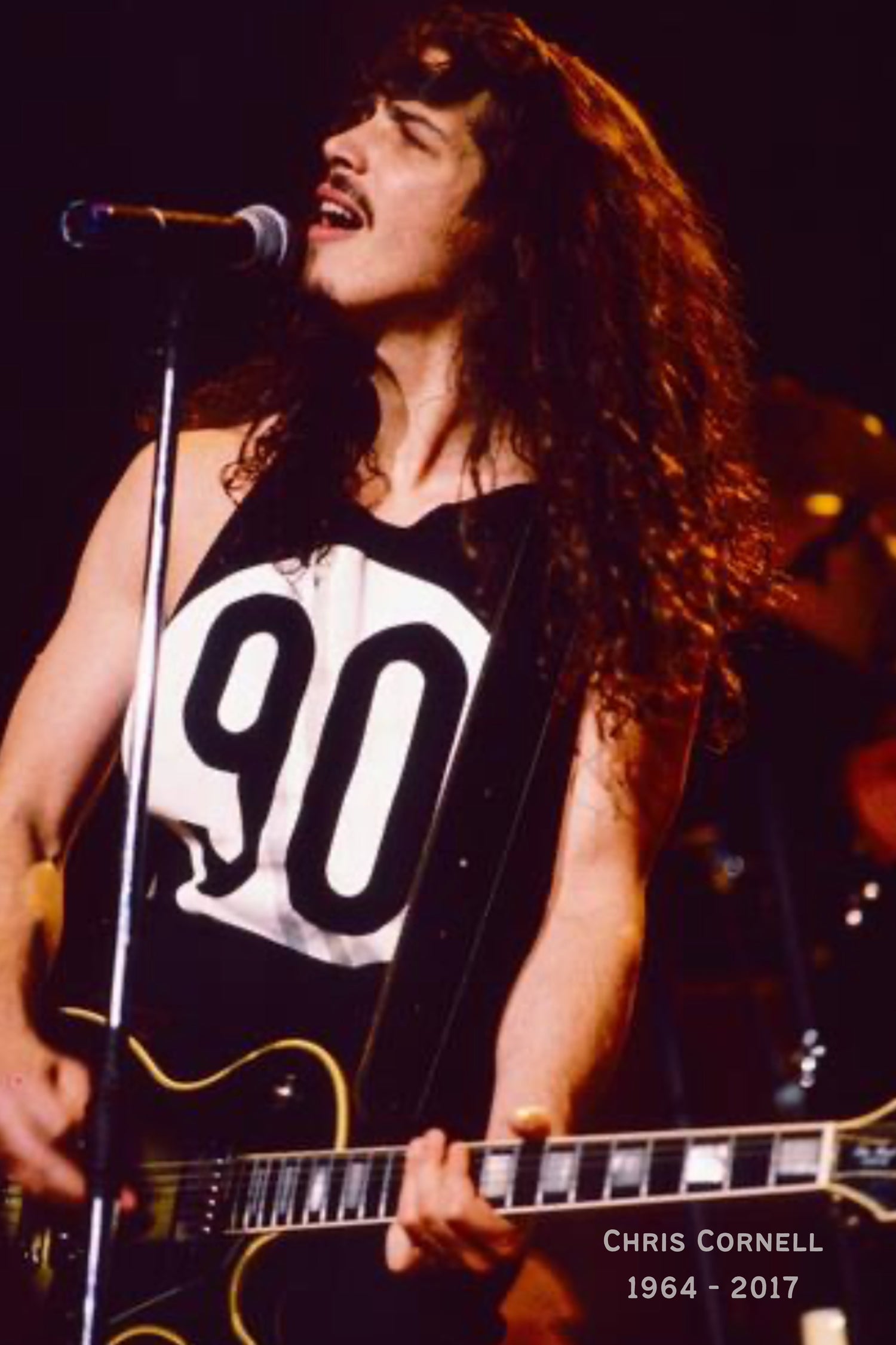 Chris Cornell in the Classic 90 Tee — worn loud on stage by one of grunge’s most powerful voices.
